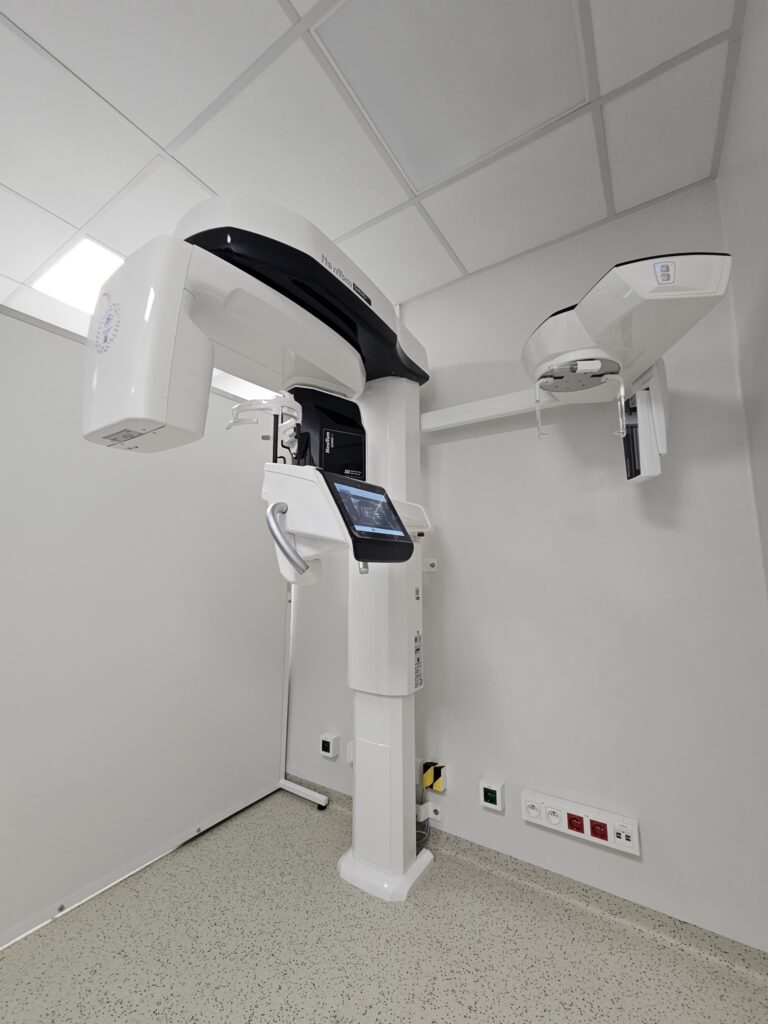 Tomograf CBCT znacząco podnosi standard diagnostyki obrazowej u dzieci, łącząc wysoką jakość obrazowania z niską dawką promieniowania. Urządzenie umożliwia szybkie, trójwymiarowe obrazowanie twarzoczaszki, uzębienia oraz struktur kostnych i wybranych tkanek miękkich. W porównaniu z klasyczną tomografią zapewnia większą szczegółowość obrazowania struktur kostnych przy krótszym czasie ekspozycji, co ma szczególne znaczenie w diagnostyce pediatrycznej.