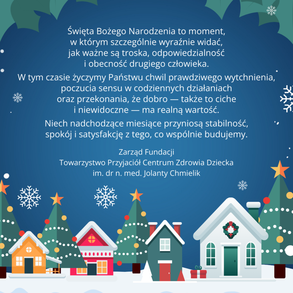 Drodzy Przyjaciele, Darczyńcy i Współpracownicy,Z okazji Świąt Wielkanocnych życzymy Wam zdrowia, spokoju i nadziei, które wypełnią Wasze serca ciepłem i siłą do realizacji marzeń. Niech ten czas będzie pełen radości, rodzinnych spotkań i chwil wytchnienia.Dziękujemy za Wasze wsparcie i za to, że razem możemy czynić dobro – dla małych pacjentów i ich rodzin. To dzięki